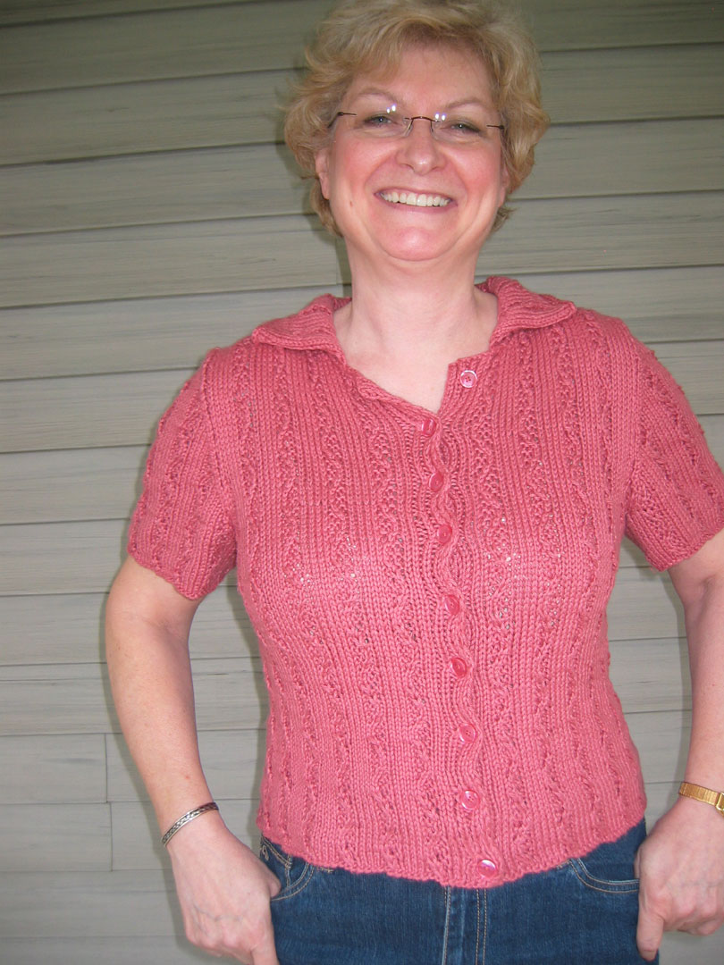 This is the only best picture I have that shows the buttons and the front button band on my Peony Twist Cardi. (Mr. Aitch cut off part of my left arm but trust me, it’s all there. And I straightened my hair this morning though you’d never know it!)