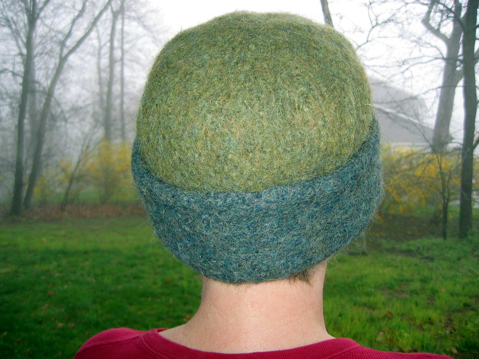 The yarn is a llama and wool blend and sheds like crazy! We have a septic system and I was afraid it would clog things up so I decided to felt it by hand with a 5-gallon bucket, hot water and new plunger.