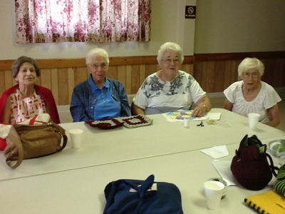 Here is a picture from the craft group.  Unfortunately I didn’t think to take a picture earlier as one of the ladies had already left.  So from l to r: my aunt Evelyn, Josephine, Dorothy, and Deo.  A lovely group of ladies.