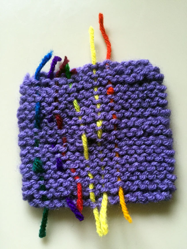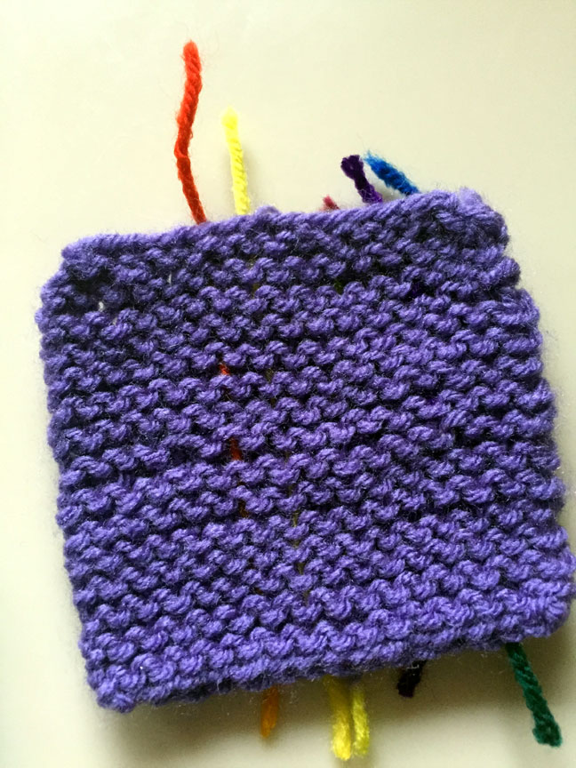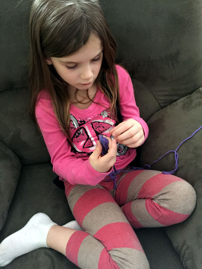 After much “This is so hard” and “You knit faster than me because you’ve been doing it longer”, I finished knitting their coasters and gave them some yarn to weave through the bumps.