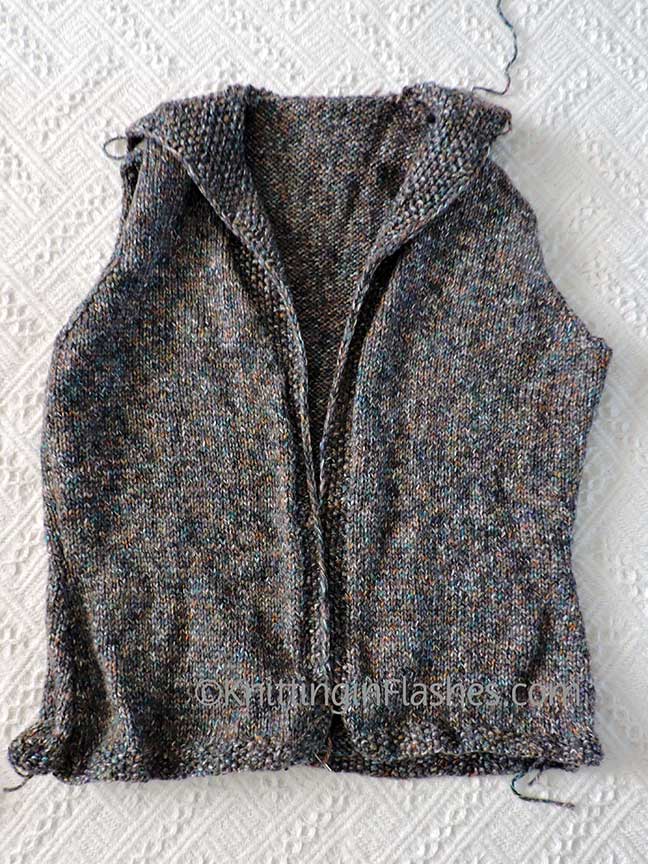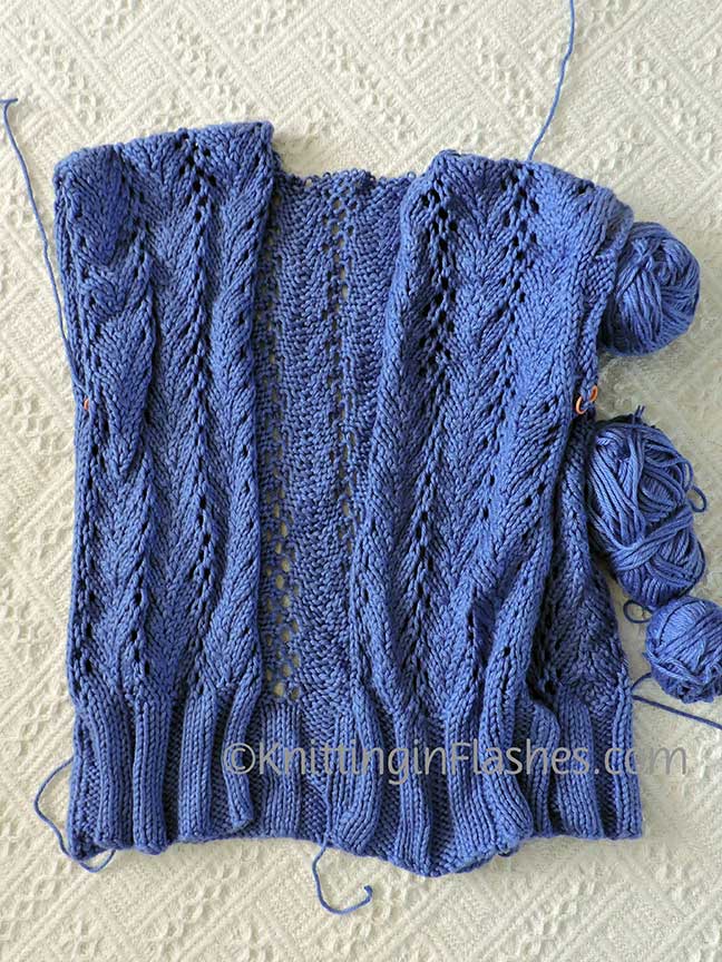 The Vine-Lace vest by Cecily Glowik MacDonald just didn’t do it for me. Knit Picks Shine. Nice soft yarn that doesn’t pill. No plan for the yarn yet.