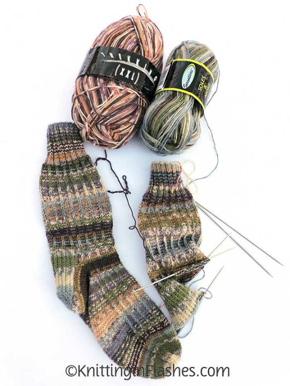 Thank you. I love them. In fact I probably have enough of each color to make another pair but I have more “ugly” yarn to use up so I might pair those balls with something else. I started another pair of socks with some gorgeous yarn from a friend but the yarn is pooling. I need to find another yarn to use with it or knit from both ends. More about that later…