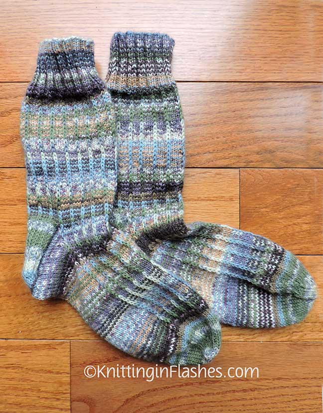 I didn’t try to match up the patterns on the second sock so they are both similar yet different.