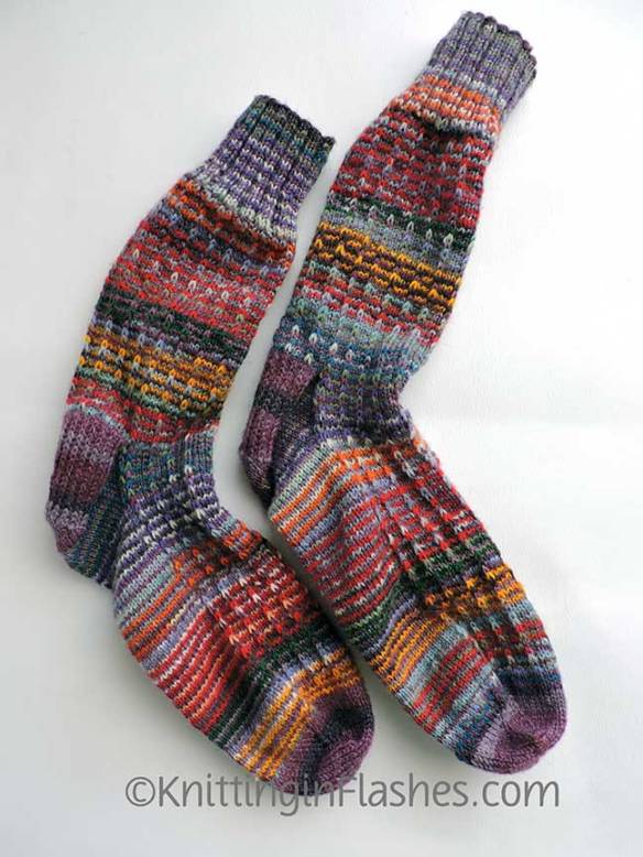 1. They are great socks! I love how you mix all the various self striping yarns together! I am still working on my pair – a little behind as I should have finished the second sock in October, but I am around the heel so it should go fast now. Just using one yarn, though, lol. They are fun to knit!