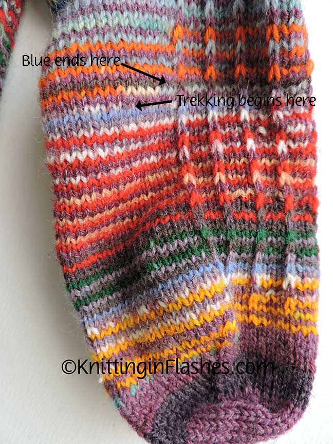 In fact I ran out of the blue and finished the second sock with some of the Trekking XXL yarn from these socks.