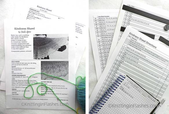 I would be farther along with this but I decided to convert the directions into a table with row-by-row stitch counts included in the far right column. It was a bit tedious and I don’t have all the stitch counts at the end of the rows as I am new to reading and deciphering lace charts to see how the count changes. This concept is used by Helen Stewart and the Spindrift Shawl pattern and it really helped me especially when the stitch counts changes every row.