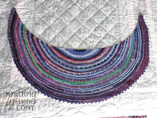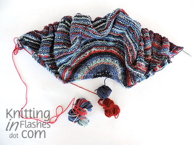 Good thing as I was running out of yarn and I had to dive into my stash for some coordinating colors to knit the last several rows.