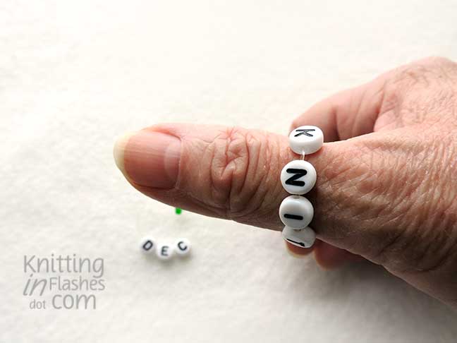 So I quickly made some “thumb bracelets” to be mindful of which row/round I’m on. Nothing fancy mind you but they work.