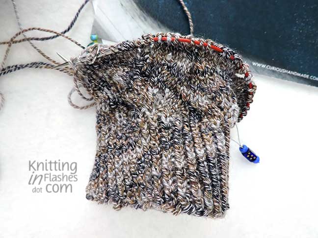 I only have 56 grams in this dye lot and will need about 70-80 grams. I might use black for the cuffs, heels, and toes…