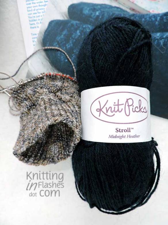 But I DO know that I will begin anew with a different yarn. My old stand-by: Knit Picks Stroll. Midnight Heather is a rich deep blue. (I’d rather use a tonal but I don’t have any in my stash that I’m willing to use for socks. The yardage for those yarns is enough for some shawls and I’d hate to use some and not have enough for later.)