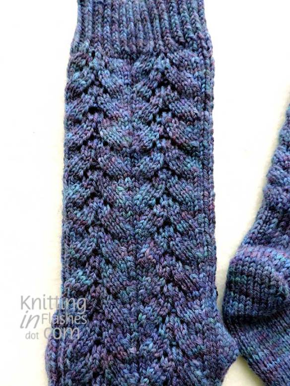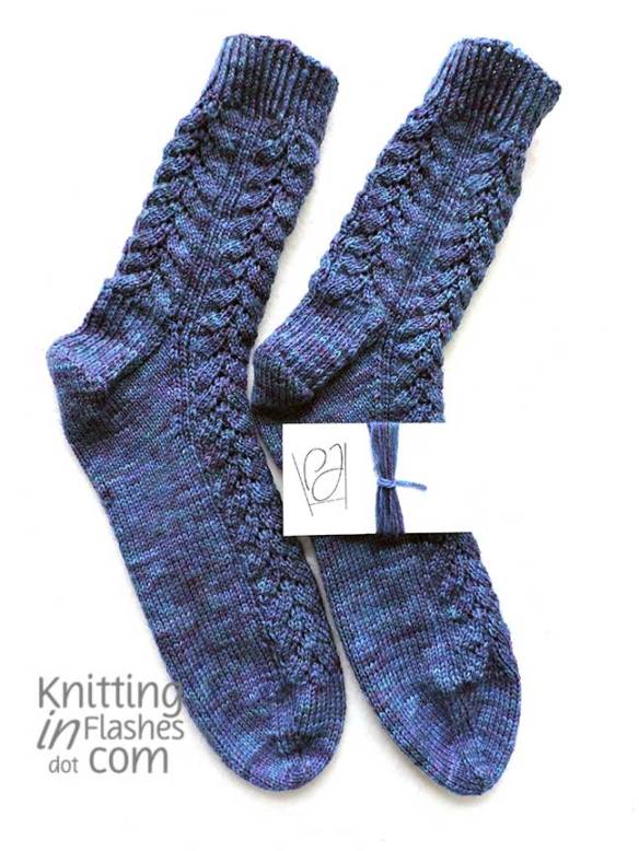 These are the Cliff Walk socks from Helen Stewart’s Handmade Sock Society season 2 collection, third in the series.