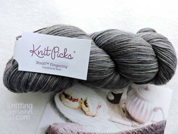 I’m not a pink sock kind of person though I do own some pink things so I opted for another color that I would wear: Knit Picks Stroll fingering weight in Thunderhead. I have two 100 gram skeins of this color and hesitated to use 75-80 grams for these socks. But then I realized that I don’t have any concrete plans for the yarn so why not use it.