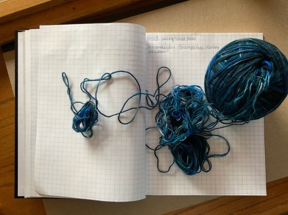 I wound the Grumpy Gus yarn into a ball before I left for Colorado. I was ready to cast on for the THSS II Sailing School Sock while the grands were in school this morning and was surprised by a sick ball of yarn.