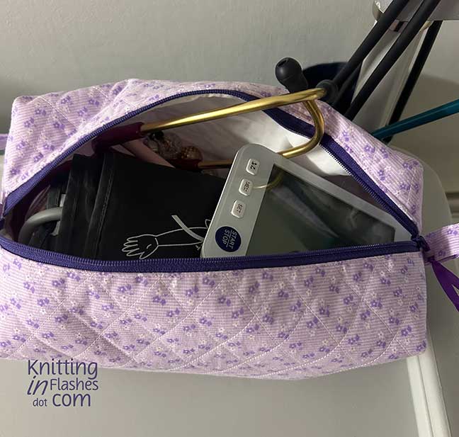 ….Her mother liked it so much that she asked if I could make one for her to keep her BP cuff and a few other medical things she uses at her nursing job. Peyton picked out the fabric and she watched me make the bag for Mom. Mom said everything she needs fits inside and she loves it!