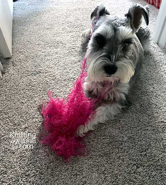 Pepper decided to help herself with a ball of Red Heart Sparkle yarn she found. I got it away from her but untangling it will be a project for daylight hours.