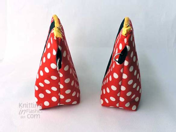 The red and white polka dot fabric was from iPad Aunt’s stash and made me think of Minnie Mouse. It was the perfect fabric for the outside. I also added some black blocks to one side just to make them a bit different.