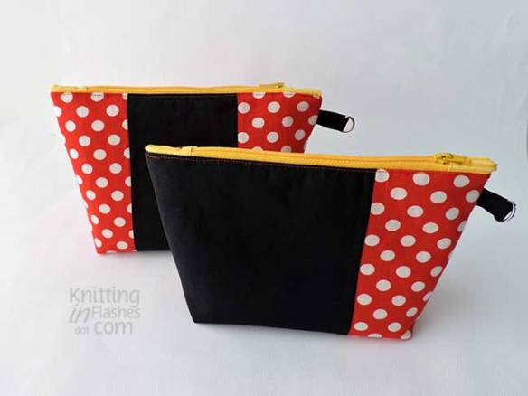 I’ve been sewing again and making a couple of small bags that remind me of Mickey Mouse in a red, white, black, and yellow theme.