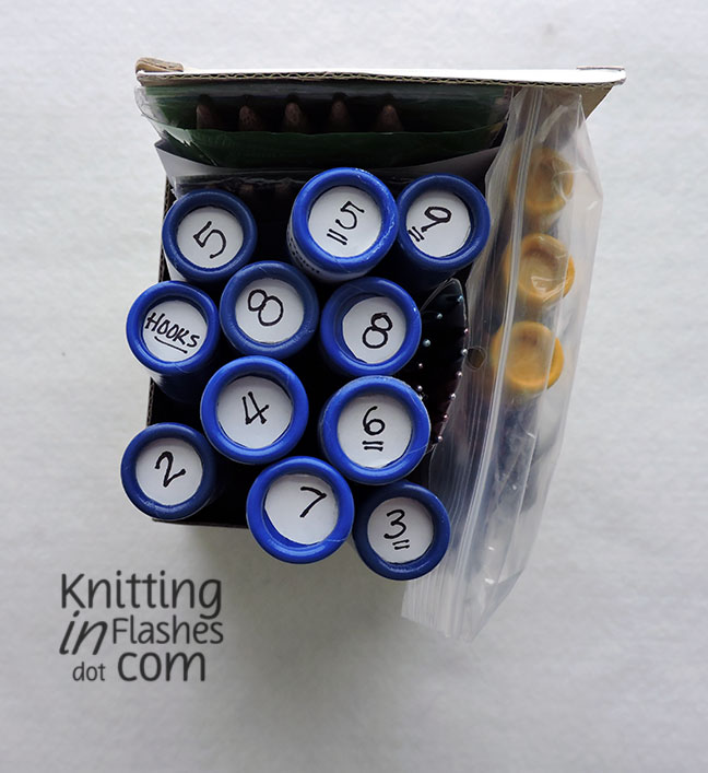 I was cleaning up my knitting bag and had to come up with another plan for all my double-pointed needles (aka dpns). I’m not a Magic Loop convert yet so most of my socks and other knitted-in-the-round items are made using dpns.