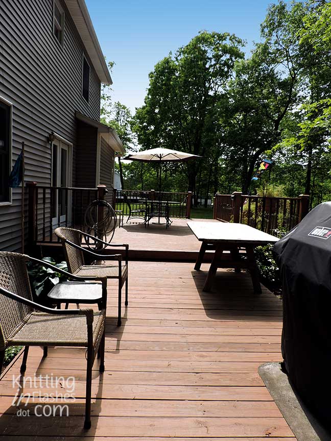 Mr. Aitch and I power washed, cleaned, and scrubbed the deck, deck furniture, and the patio umbrella last weekend.