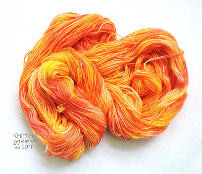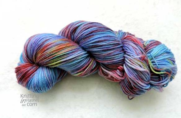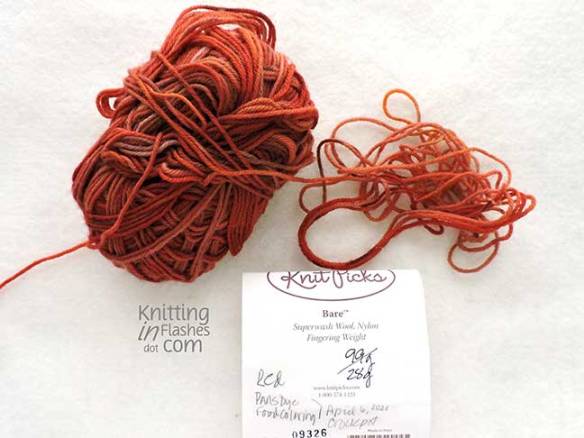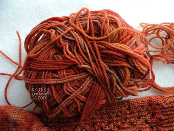 I already knit a pair of socks and didn’t get any pictures of the skein beforehand. This is what I have left over.