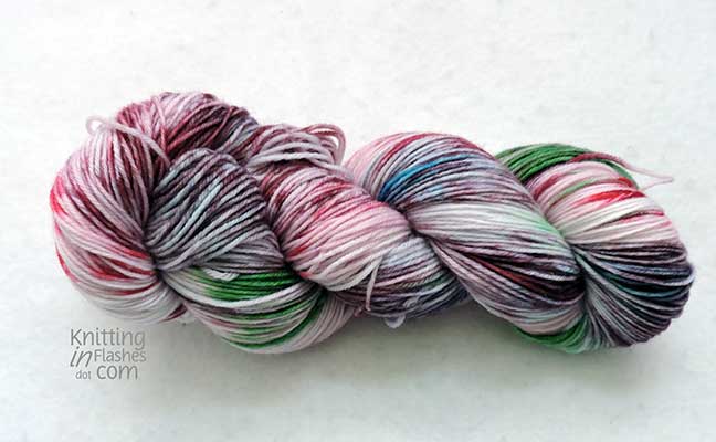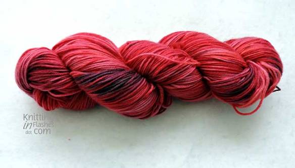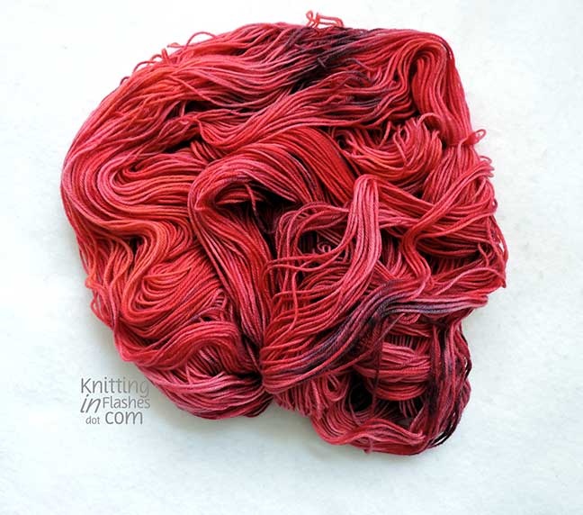 She also used some leftover red and black and a mixture of those for a black cherry hue for this skein.