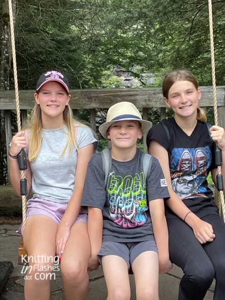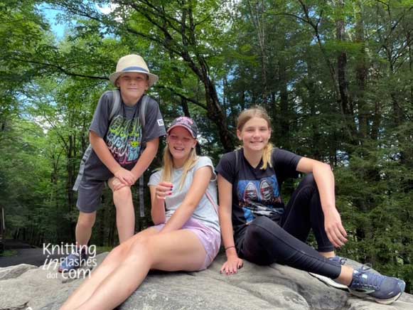 Besides going on a hike to Blackwater Falls, visiting Geroge Washington’s headquarters, eating ice cream, having a picnic, painting rocks, celebrating our wedding anniversaries (Daughter and S-I-L 15 years, Mr. Atich and myself 48 years!), and rock painting, we also dyed yarn!