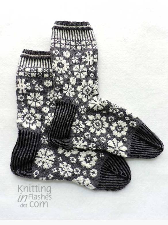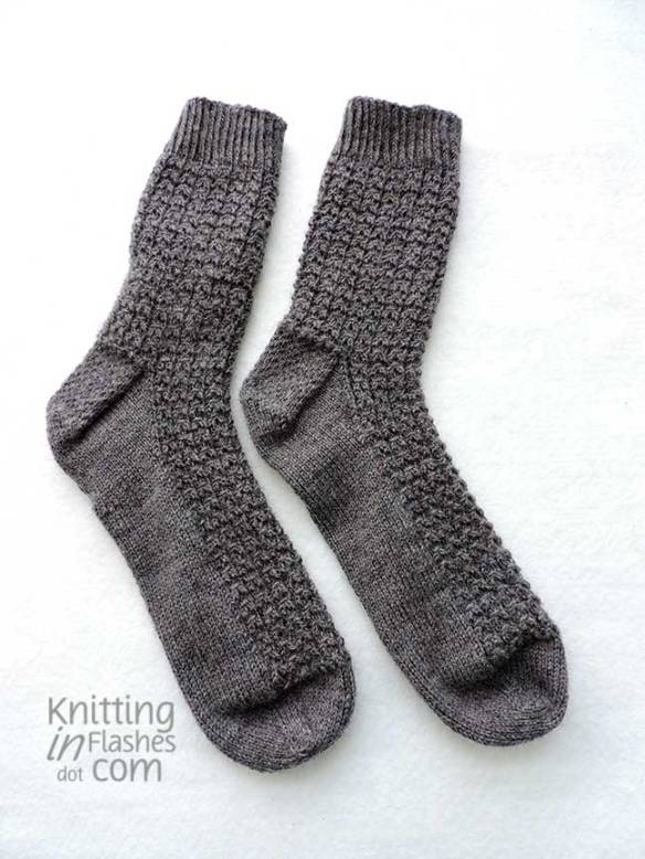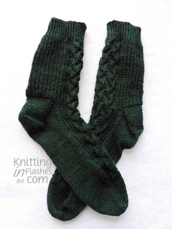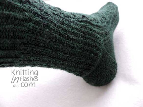 My only mods were to substitute the slipped stitch heel flap for Eye of Partridge heel flap.