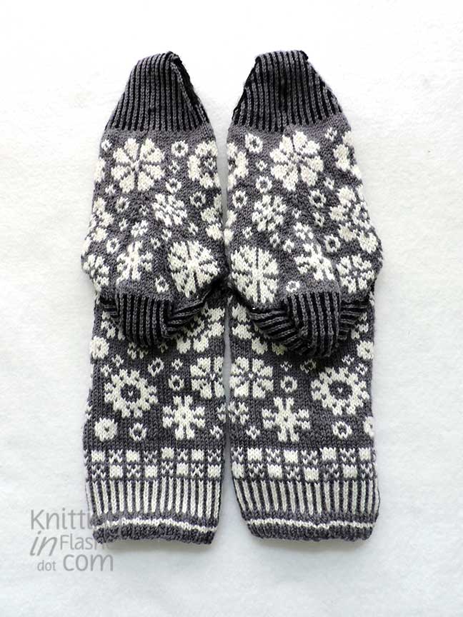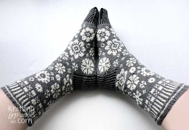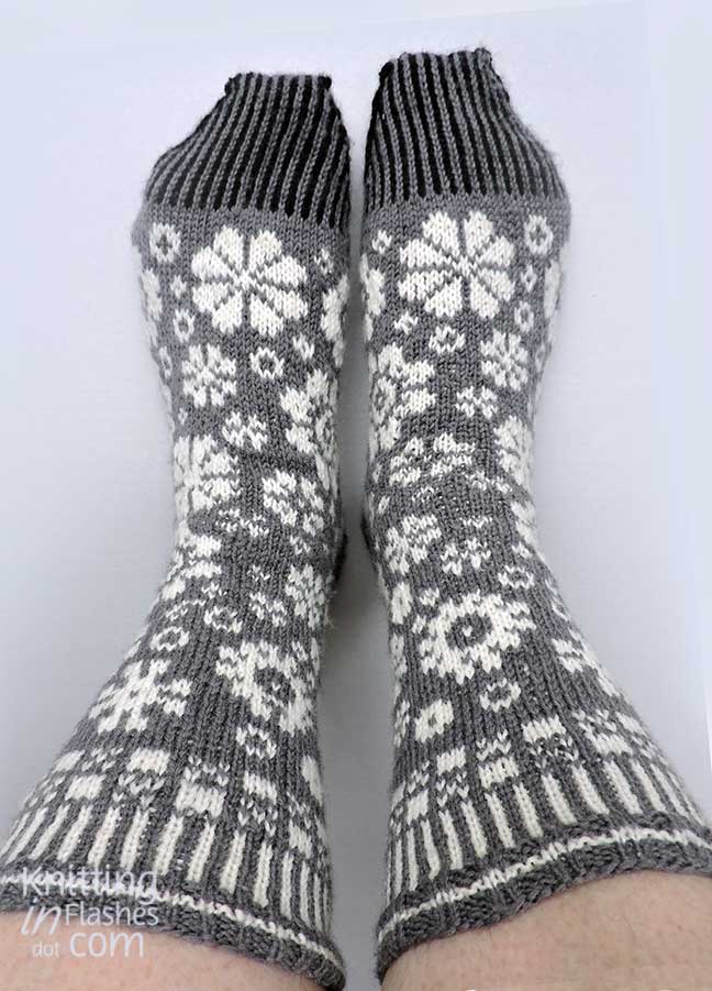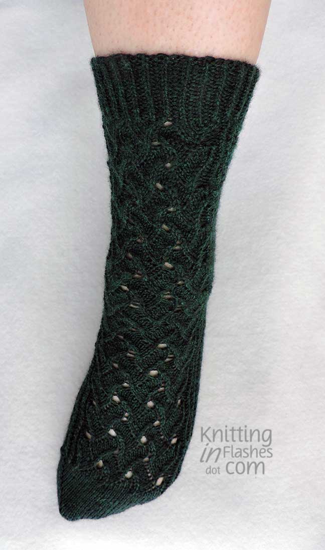 My only mods were to substitute the slipped stitch heel flap for Eye of Partridge heel flap.