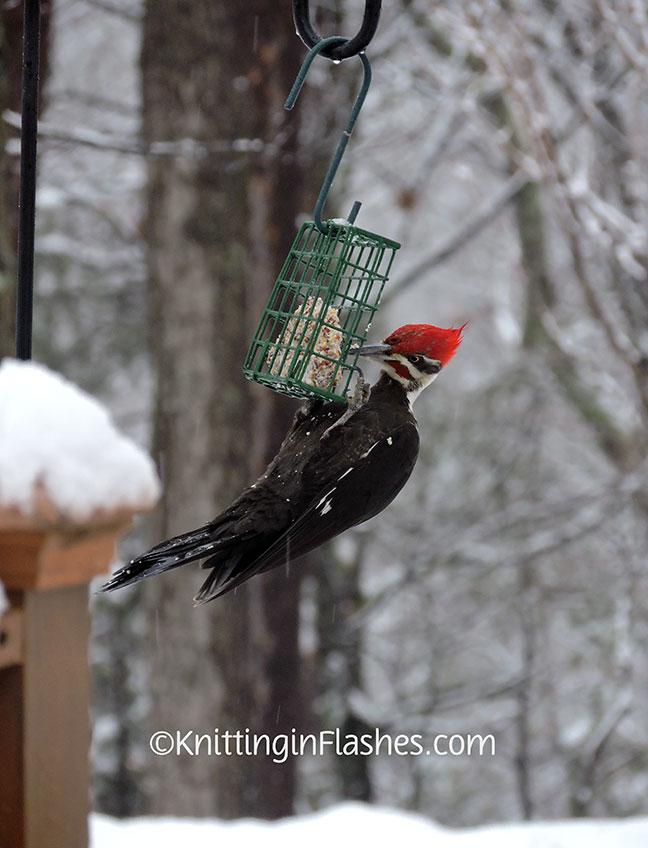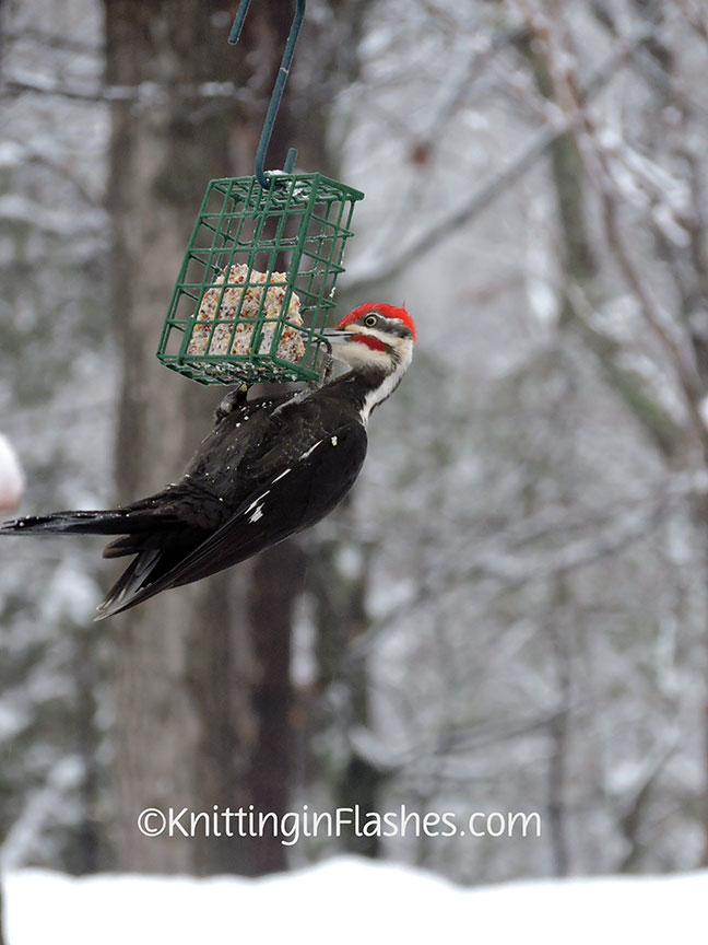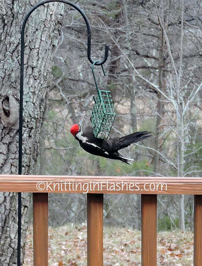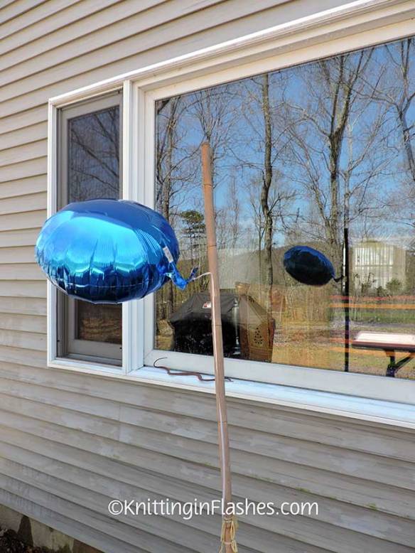 If you look closely, you can see the silvery icicle garland strung across the railings to keep the birds from roosting and pooping there.