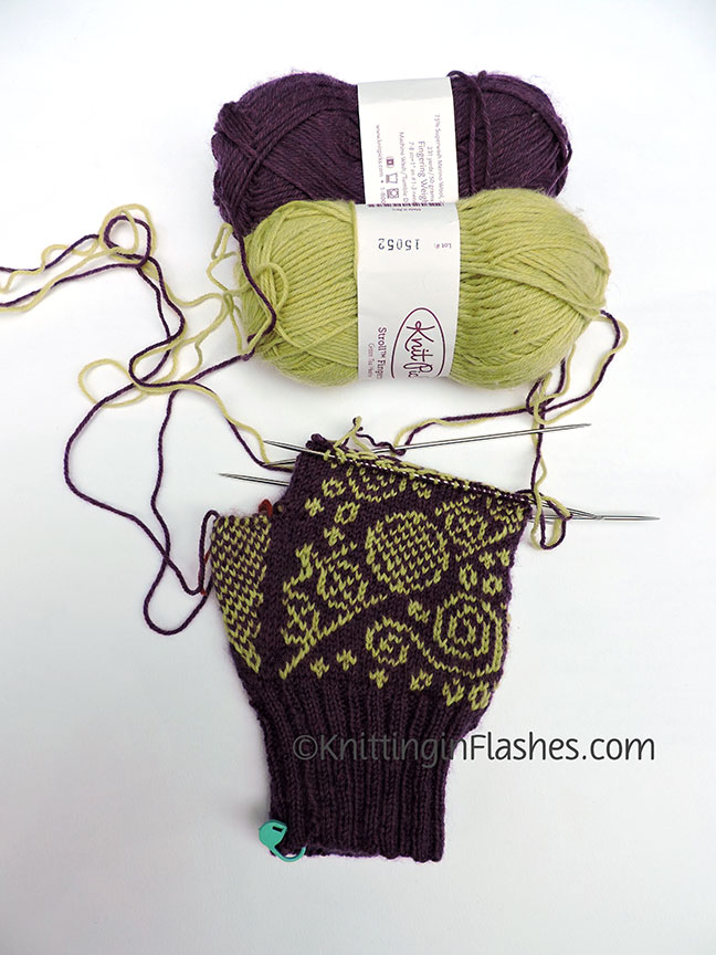 I love this sweater. The colors played well together and from a distance, it looks like a solid color. The Debbie Bliss Mia yarn felt good in my hands. The color did bleed a bit.