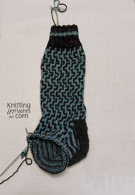 I prefer the Eye of Partridge heel flap as I think it is more durable. (I must say that I’ve never had to reinforce or repair any of the heels on the socks I’ve knit whether it’s the standard slipped-stitch or Eye of Partridge heel flap so it’s just my personal preference.)