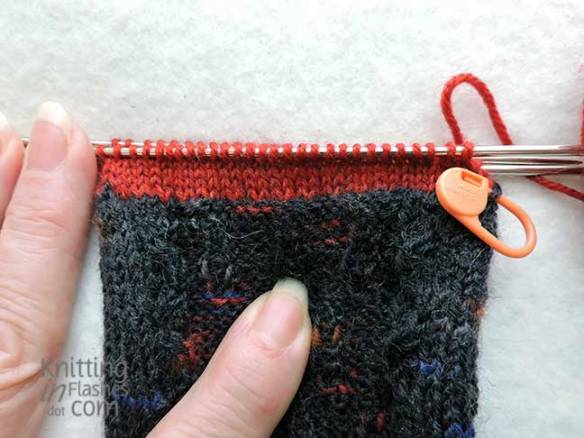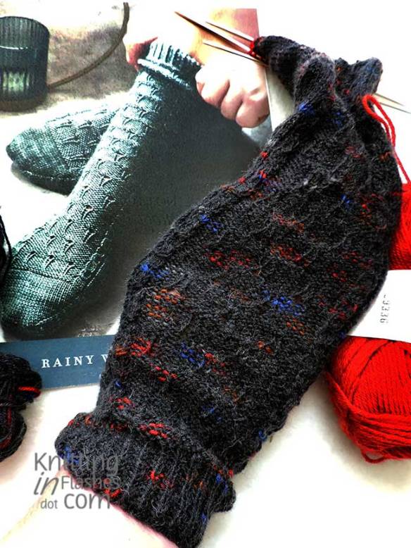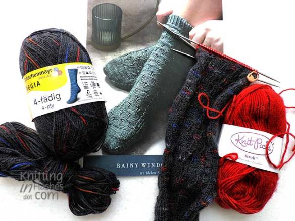 I’ve already started knitting a pair of Helen Stewart’s Dorsal Fin socks (her choice) for her with the yarn she dyed.