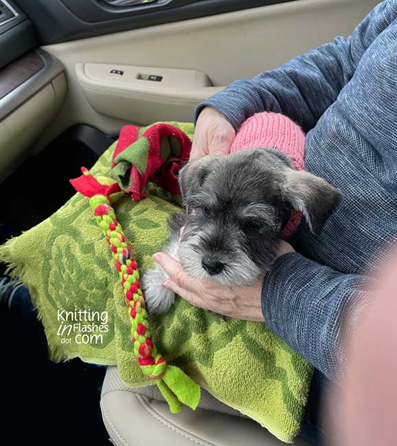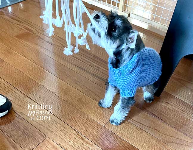 My knitting since then has consisted of sweaters for our pup. She’s growing so fast! In fact, I think she outgrew the first sweater in the car on the drive home.