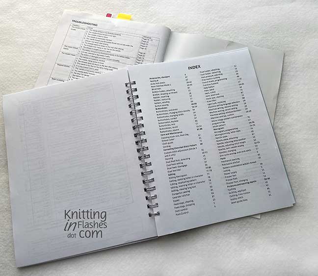As long as I had it out, I decided to bind my sewing machine manual and add an index to it. I don’t know why some manuals include an index and why some think you can find what you’re looking for in the table of contents. Sure it took me awhile to find everything with the appropriate page numbers and organize it but now it’s done and easy to find exactly what I need.