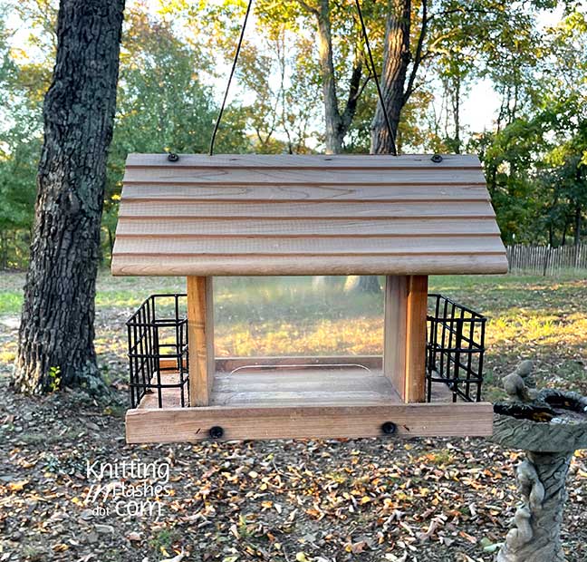 I like to feed the birds during the winter and hummingbirds in the summer. Last year I got a new feeder for the winter that has places for seeds as well as suet cakes.