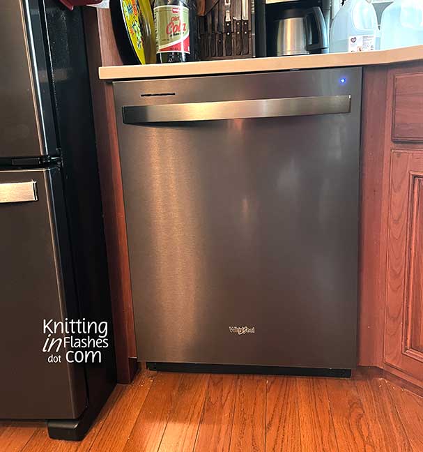 It’s got three racks and holds much more than the old one. The inside is stainless as opposed to my old one which was white so that makes it seem darker, however, it won’t stain! Looking at you spaghetti sauce and wine drips. I read the manual and evidently some models come with a light inside. I didn’t know that, did you? I never had a light so I don’t miss it but the next one….