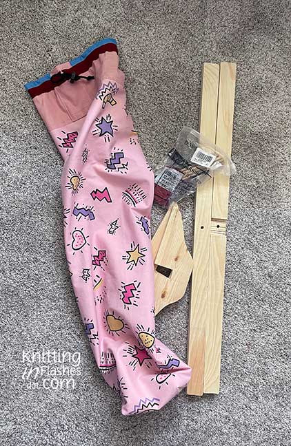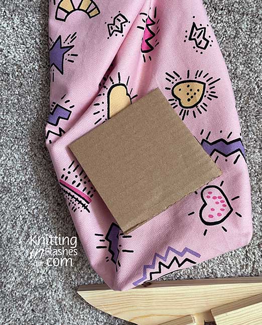 I finally finished the yarn swift bag that I started in January. The fabric is a heavier weight cotton from my stash and at least 35 years old. I bought it to make curtains for my daughter’s bedroom but never did. The lining is cotton from my M-I-L’s stash (also old). I sewed a pocket on the inside with a snap flap to keep the dowels and washers in for easier access. The cardboard square helps stabilize the bottom.