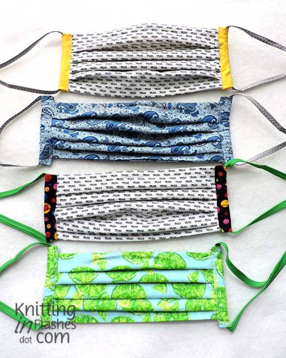 I used a sturdy cotton fabric (in my fabric stash for 30-35 years!) for the exterior, satiny smooth fabric for the interior, grosgrain ribbon for the hanging loops, and leftover plastic cord from my upholstery projects. Plus two magnetic hooks to attach the bag to the metal door.