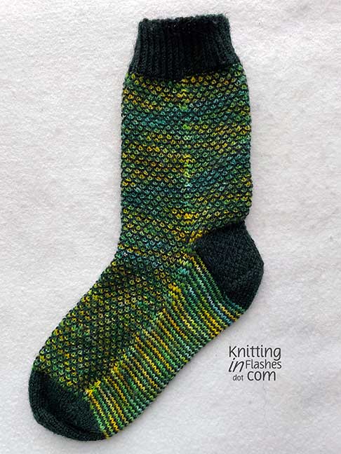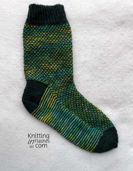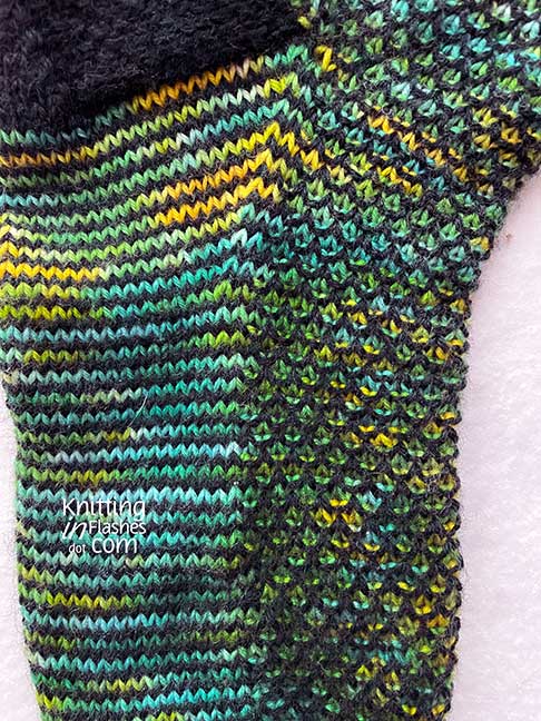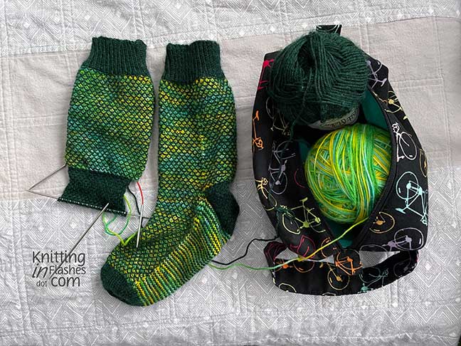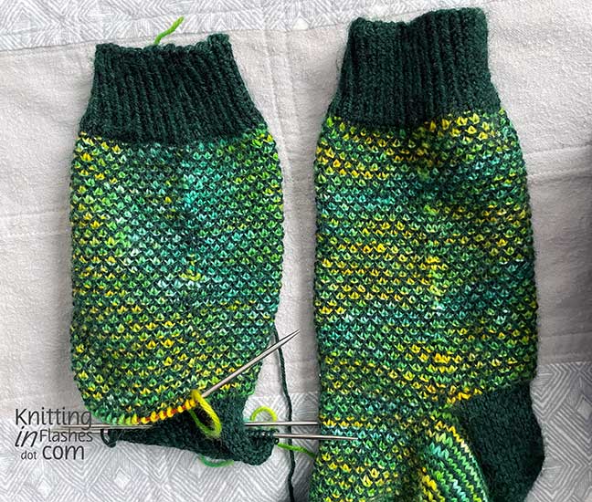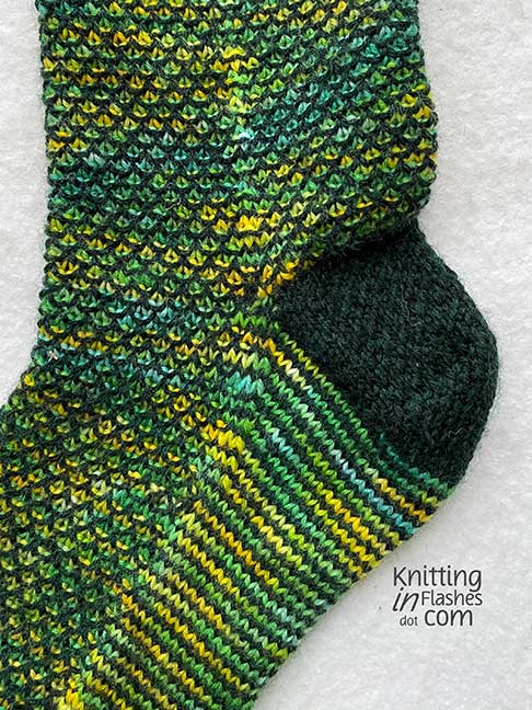 Speaking of the yarn, this Regia 4-ply is a workhorse of a yarn. I’ve used it before and the yarn doesn’t pill or get holes in it, at least I haven’t had those experiences yet. I plan to knit the toes in one of my hand-dyed yarns leftover from a sock from couple of years ago.