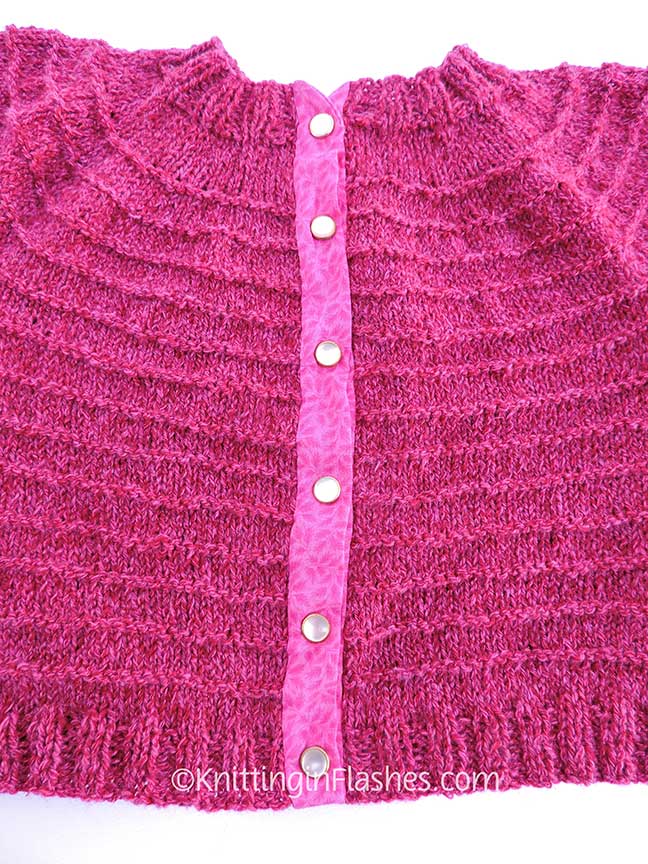 The Bacardi Cardigan sweater is knit on circular needles though knit flat. The reason is so the color changes don’t have to start and end on the same edge. If the color you need is on the other side, just turn the work over and start knitting/purling from that edge. It can get tricky but it saves from weaving in hundreds of ends when finished. And weaving in cotton yarn has challenges quite different from wool. It’s slippery, doesn’t like to stay put and has a mind of its own.