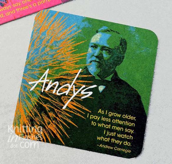Time to celebrate my S-I-Ls winnings (beginners luck???) at Andy’s Bar in our hotel. The coasters showcased different Andys. BTW the shoestring fries with aioli sauce are fantastic!