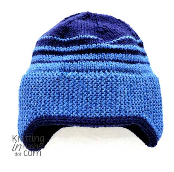 I’m really liking the marled look of the yarns held together. And the knit-in ear coverings really keep the chill out.