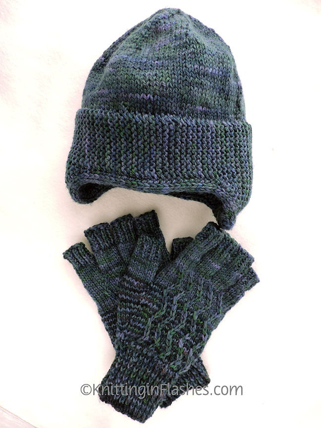 You remember the 1898 knitted cap I made for Mr. Aitch with overdyed yarn? Well, it needed some fingerless gloves for company.