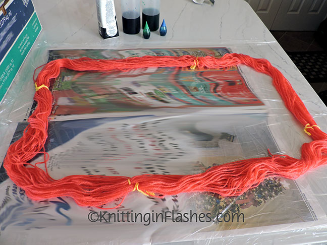 Using the same brand of yarn and the same food dye colors, I wanted to get something that would coordinate with the original overdye.