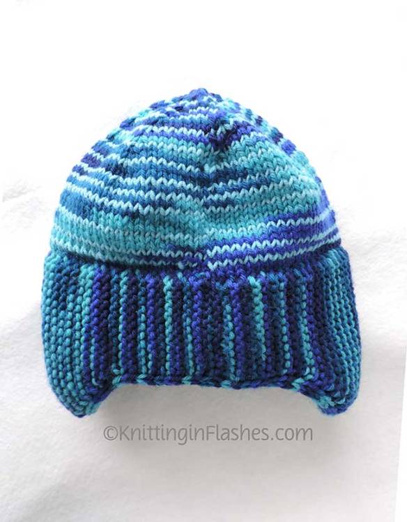 The headband is knit first and I really liked the way the colors spread but then when I began the crown part, I was not too happy with the way they didn’t as you can see below. If that would have happened on the front instead of the back, it would have been fine.