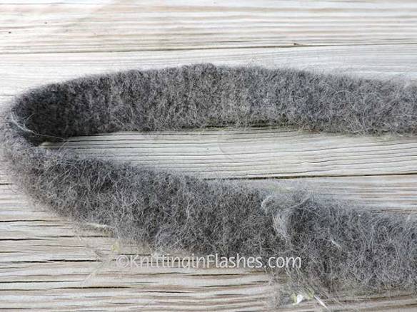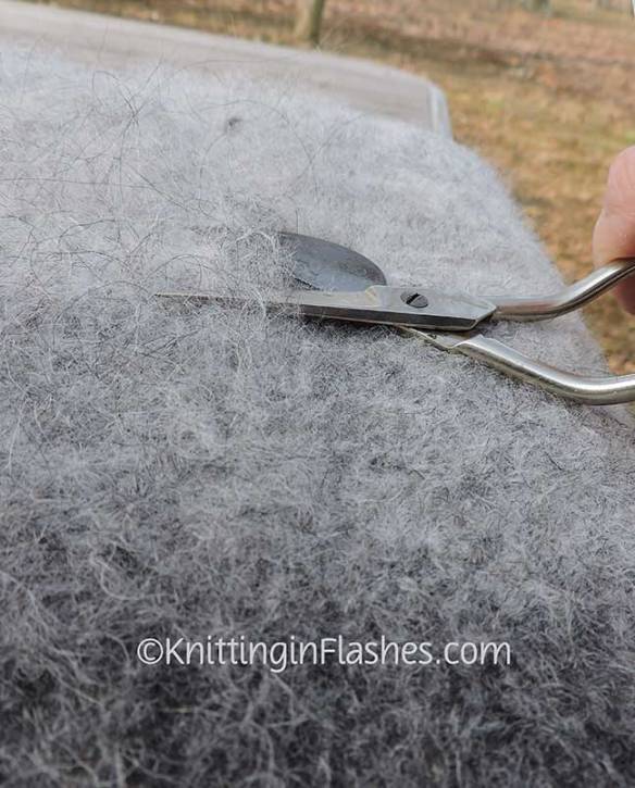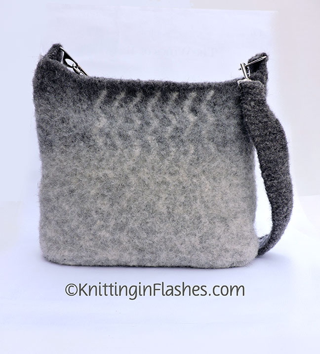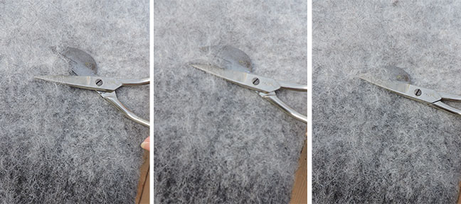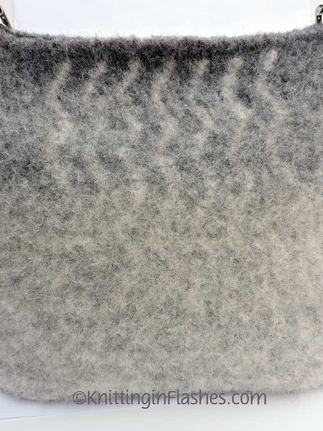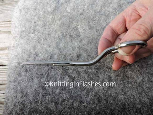 I cut the solid back and handles off the original canvas bag for the bottom section and handles for Pepper’s bag. I used a layer of fusible fleece on both the outer and lining fabrics to give the bag more stability.