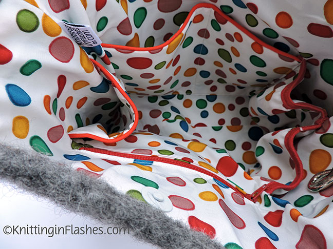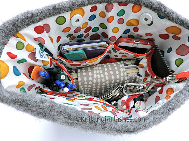 I added a vinyl pocket to the front, a slip pocket inside, and a snap to keep it closed. The best part was that I used what I had. The straps/handles are dark green but I’m OK with that. And Pepper doesn’t care either.