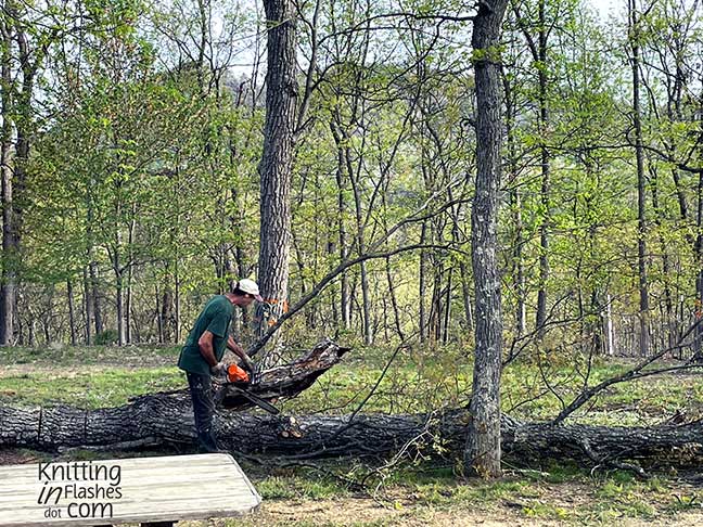 I’ve spent more time sewing than knitting this year and finished a Catch-All Caddy by Patterns by Annie. I want to make one out of canvas, denim, or other heavy fabric to use a a tool bag. I bought a cordless hammer drill and need a way to carry the drill, bits, battery, gloves, etc. when drilling into some of the tree stumps in our back yard. I’m “helping” the stump disintegrate by drilling large, deep holes and filling them with Epsom salts to speed up the decay.