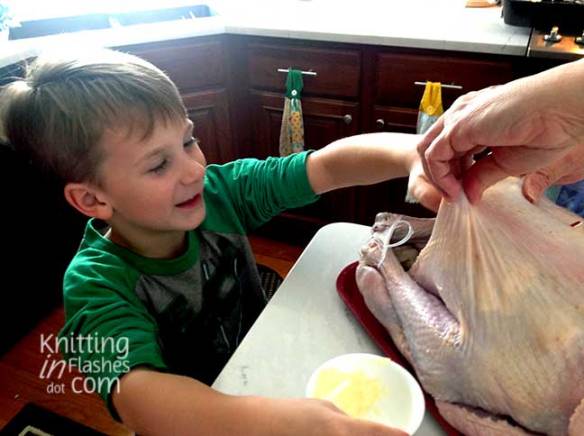 Once the grossness was out of the way, they did a wonderful job of smearing butter all over the bird.