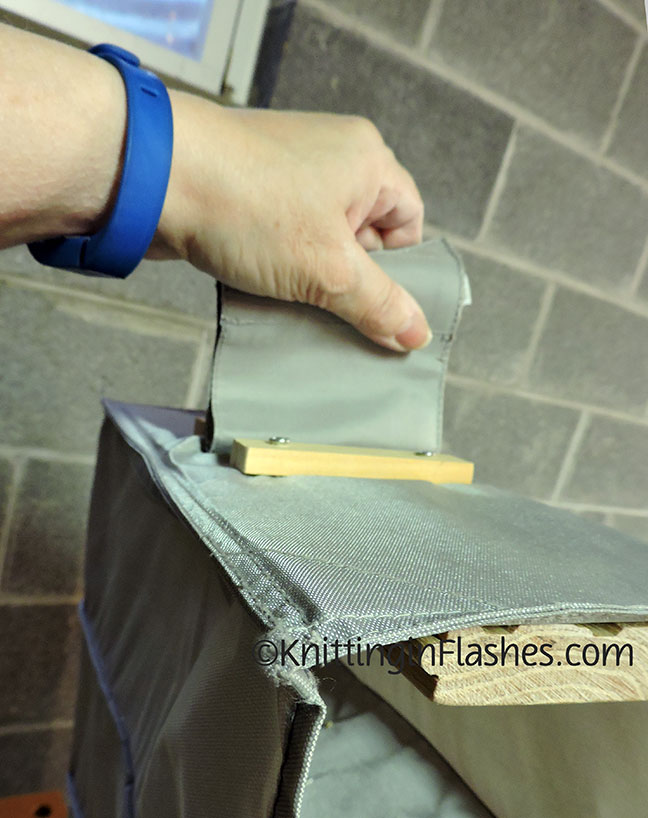 My plan is this. I don’t have any extra shower curtain hooks and as I said before, it’s too cold and snowy to go out and buy some today. I will need another over-the-door hook to hang the cap holder so it will hang high on the inside of the door won’t interfere with the coats. When I find them and make the hat holder, the closet will be finished.